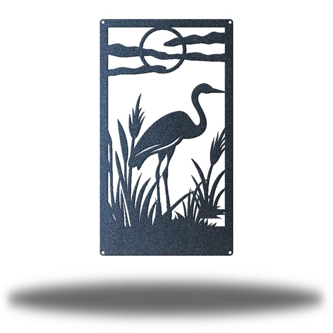This Heron Rectangle Metal Wall Art is constructed of 18 gauge steel on a Fiber Laser and then Powder Coated to give this item a one of a kind, unique finish. - Indoor/Outdoor Safe: Each product is powder coated, making it weather-resistant - Product fully designed and produced in the US -Strategically placed mounting holes designed for easy and level placement on your wall