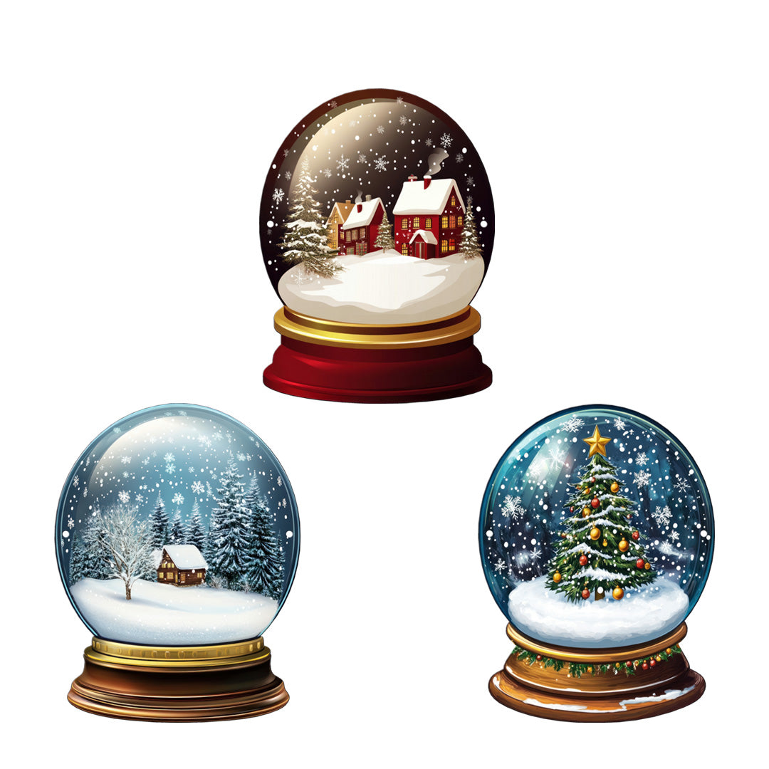 This Printed Winter Snow Globes Bundle Metal Wall Art is laser cut from 18 gauge steel and finished with a detailed sublimation print. The winter artwork is printed on the front side only. A perfect seasonal accent that can be reused year after year.